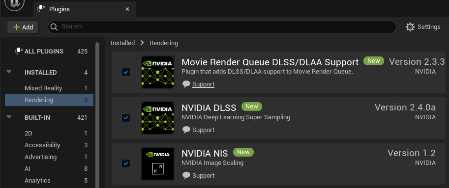 NVIDIA DLSS, 카테고리 코드 플러그인 - UE 마켓플레이스